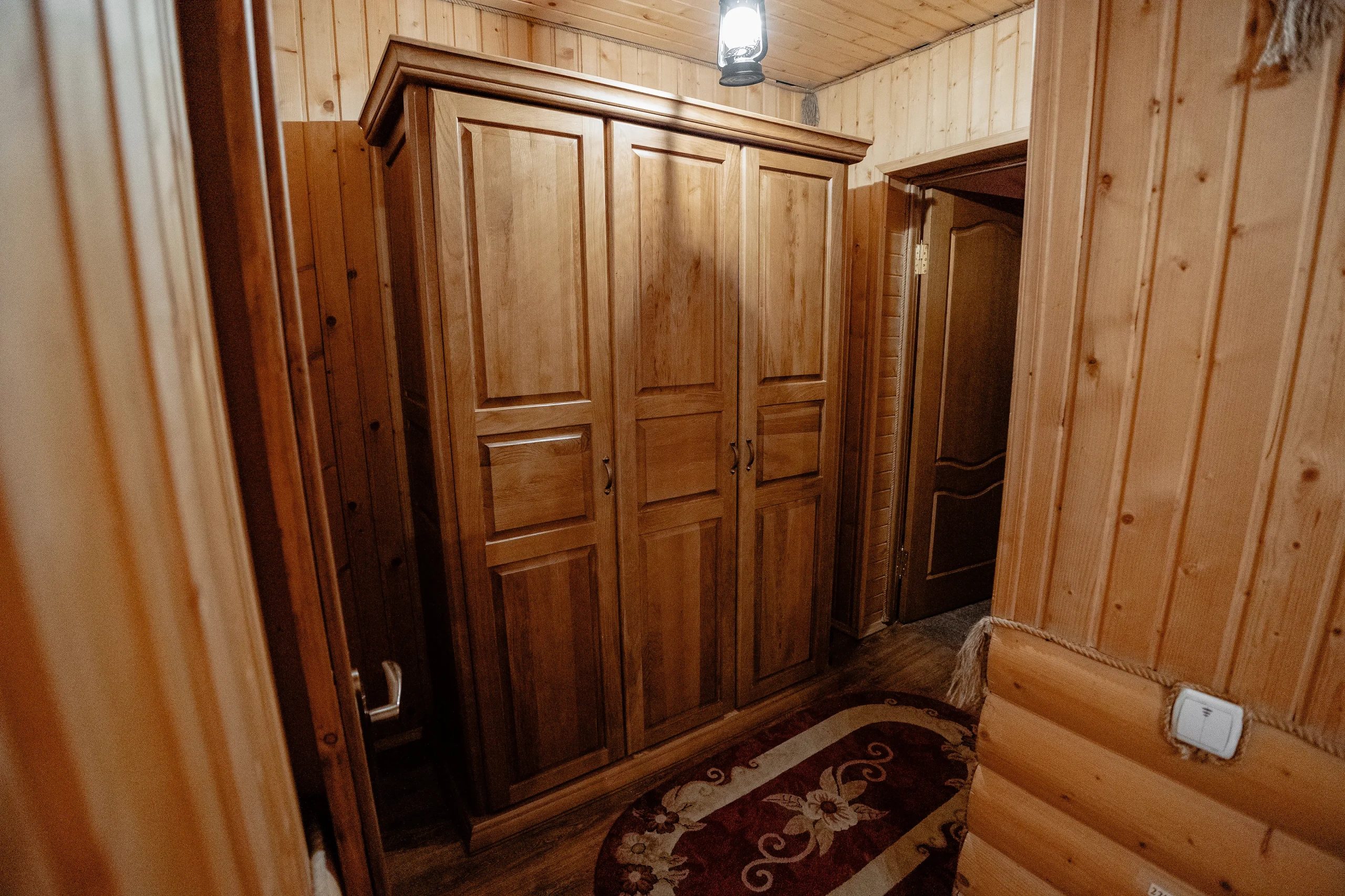 - Меблі. Чотири односпальних ліжка, стіл, стільці, тумбочки та велика шафа для речей.